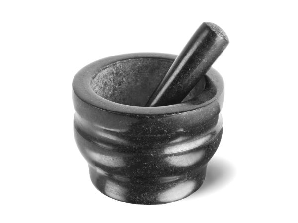 Cole & Masonin musta graniittimortteli on paitsi kaunis myös erittäin toimiva. Huhmare on muotoiltu tukevaksi ja käyttäjä saa siitä saa hyvän otteen. Petkel on päästä erittäin leveä ja huhmaren pohjan mukaisesti kupera, joten se hienontaa sekä kuivat että kosteat ruoka-aineet tehokkaasti ja läikyttämättä. Morttelin ulkopinta on tyylikkäästi kiillotettu.